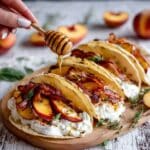Delight in these elegant Pancake Tacos featuring fluffy homemade pancakes folded taco-style and filled with caramelized peaches, crispy pancetta, and luscious whipped cream, finished with fresh thyme and a drizzle of syrup or honey for a perfect sweet and savory brunch treat.