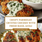 Keywords: Parmesan crusted chicken, basil aioli, crispy chicken, baked chicken, panko coated chicken, easy chicken recipes