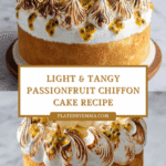 Passionfruit Chiffon is a light, airy cake bursting with tropical flavor and a delicate citrus tang. This recipe combines a fluffy passionfruit-infused sponge with luscious curd and glossy Swiss meringue for an impressive yet approachable dessert.