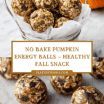Keywords: pumpkin energy balls, no bake snack, healthy snack, pumpkin puree, almond butter, pumpkin spice, easy snack, healthy treats