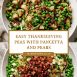Keywords: Thanksgiving side dish, peas with pancetta, holiday recipe, quick side, lemon zest peas, savory pear peas