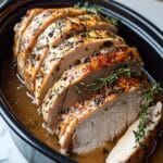 A tender and flavorful slow cooker Amish Maple Turkey Breast recipe featuring a sweet and tangy maple syrup glaze infused with apple cider vinegar, Dijon mustard, and aromatic herbs. Perfect for an easy, hands-off meal with a delightful balance of savory and sweet flavors.