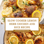 Keywords: slow cooker chicken, lemon herb chicken, chicken and rice, easy dinner, one pot meal, healthy chicken recipe