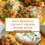 This Spicy Brazilian Coconut Chicken offers a vibrant fusion of creamy coconut milk, smoky paprika, and fiery chili flakes, creating an aromatic and flavorful dish perfect for a comforting meal. Tender chicken pieces simmer in a rich sauce infused with fresh ginger, garlic, and a hint of lime, delivering a beautiful balance of spicy, savory, and slightly sweet notes that pair wonderfully with rice or quinoa.