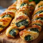 Delicious Spinach & Feta Puff Pastry Twists featuring a creamy spinach and feta filling wrapped in flaky puff pastry, perfect as a savory snack or appetizer. These golden, crispy twists are easy to prepare and bake to perfection, making them a great choice for gatherings or quick bites.