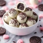 Keywords: Oreo balls, no bake dessert, easy Oreo treats, Oreo truffles, three ingredient dessert, party snacks, white chocolate Oreo balls