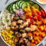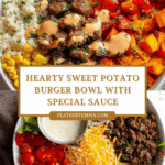 This Sweet Potato Burger Bowl is a delicious and wholesome meal combining seasoned ground beef, roasted sweet potatoes, fresh vegetables, and a tangy homemade special sauce. Perfect for a nutritious dinner that’s packed with flavor and easy to prepare.