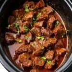 - Stir occasionally to prevent the steak bites from sticking to the crockpot sides.