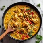 Store leftover chicken and sauce separately in airtight containers in the refrigerator for up to 3 days. Reheat the chicken gently in the microwave or on the stovetop to avoid drying out. The sauce may thicken when chilled; stir in a splash of water or coconut milk to loosen before serving.