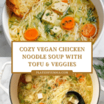 Keywords: vegan chicken noodle soup, plant-based soup, tofu soup, vegetable broth soup, healthy vegan soup, easy vegan dinner, vegan comfort food