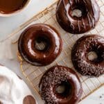Store the donuts in an airtight container in the refrigerator for up to 4 days. Reheat gently in the microwave for about 10 seconds before serving, or enjoy chilled for a fudgy texture. For longer storage, you can freeze the unglazed donuts for up to 1 month and glaze them after thawing.