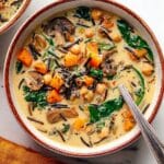 This vegan pumpkin wild rice soup is a comforting and flavorful dish perfect for chilly days. It blends creamy pumpkin and coconut milk with hearty wild rice and savory herbs for a satisfying and nourishing meal.