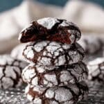 The crackled appearance comes from rolling the dough balls in powdered sugar before baking, which dries the surface and creates those signature cracks as the cookies expand.