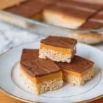 Keywords: Whatchamacallit Krispie Treats, rice krispie treats, peanut butter, caramel, chocolate, no bake dessert, homemade treats
