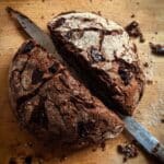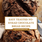 This Yeasted No-Knead Chocolate Bread combines the rich flavor of Dutch process cocoa with the soft sweetness of milk chocolate chips in a simple, no-knead recipe. Perfectly crusty on the outside and tender inside, this bread requires minimal hands-on time and uses a dutch oven to achieve a professional bakery-quality loaf at home.