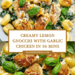 Keywords: lemon gnocchi, garlic chicken, creamy gnocchi recipe, Italian dinner, easy stovetop meal, lemon pasta, Parmesan gnocchi